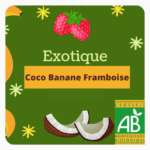 Rooibos* d’Afrique du sud, noix de coco râpée*, morceaux de banane*, badiane*, arômes naturels* (banane, framboise*, noix de coco). (*issu de l’agriculture biologique UE et non UE)