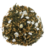 Thé Bancha vert avec des grains de riz soufflé. Légère saveur de maïs, feuilles longues et pressées.
