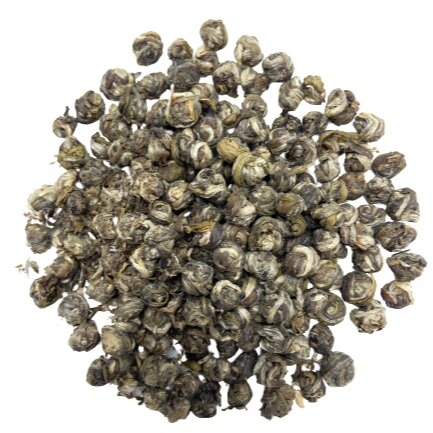 L’un des plus beaux trésors du monde du thé. Les bourgeons de thé vert de qualité supérieure sont mélangés encore humides aux fleurs de jasmin fraîches, jusqu’à 7 fois. Le tout est ensuite façonné à la main en perles délicates.